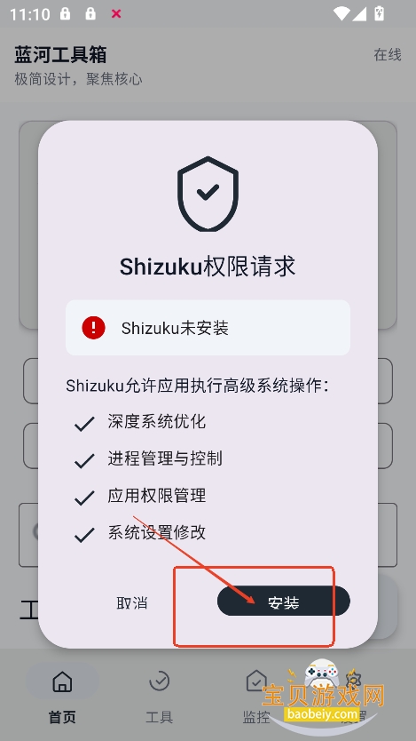 1、进入首页,点击高级设置界面,可以配合shizuku一起使用