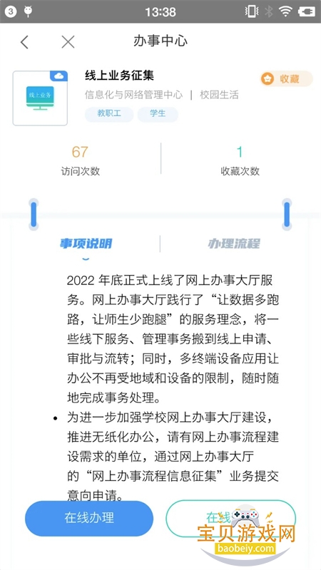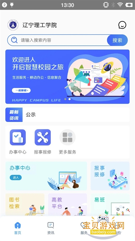 智慧辽理工平台app最新版本下载是专门为辽宁理工学院师生打造的校园服务平台,集教学服务、办公服务、生活服务等多种服务于一体,为大家提供了办事中心、图书检索、报事报修、资讯通告等功能,可以满足大家校园生活的各种使用需求,有需要的朋友们快来宝贝游戏网下载体验吧!