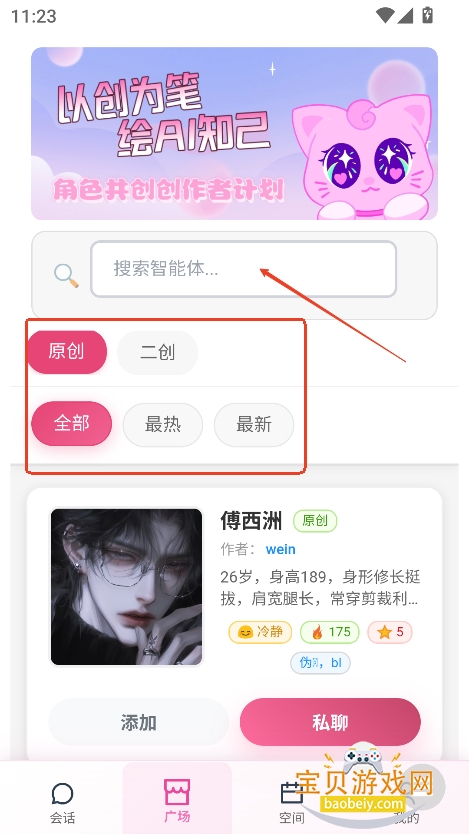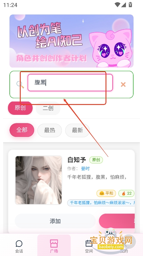 2、或者直接搜索框输入关键词,检索可能喜欢的角色