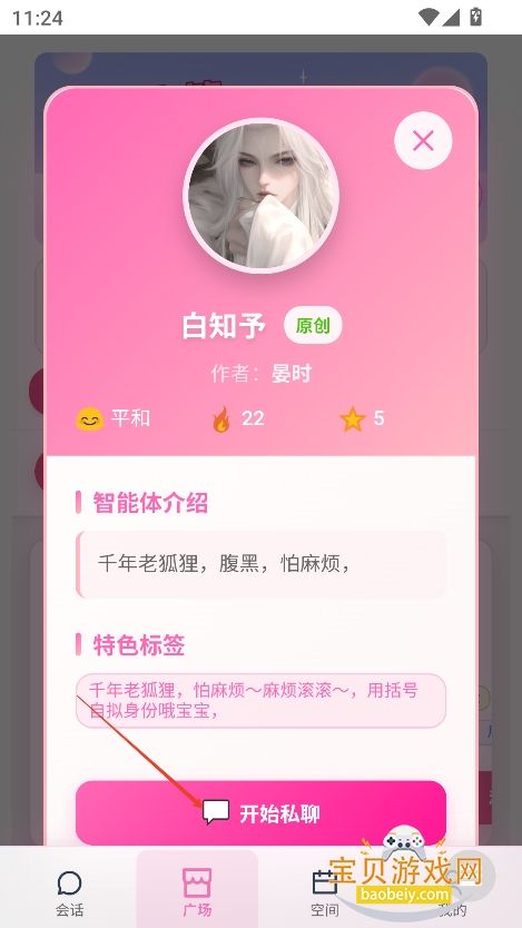 3、进入角色界面,点击“开始私聊”