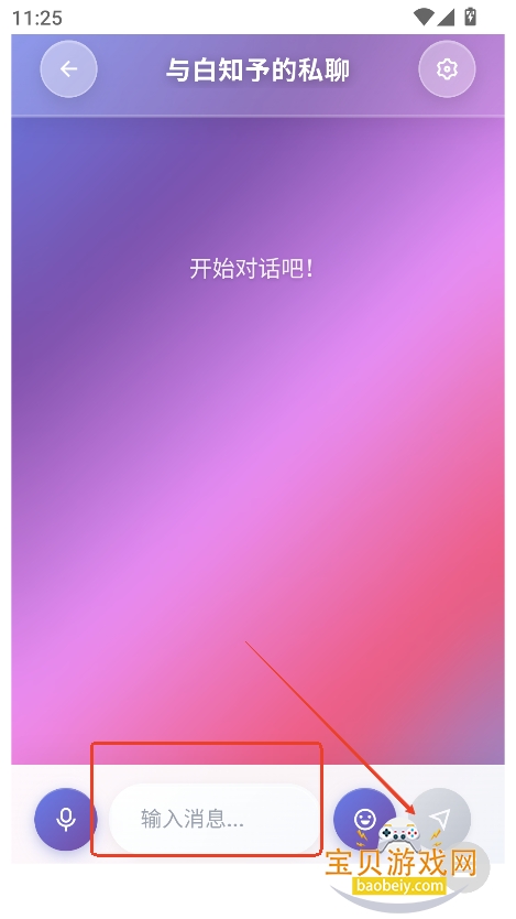 4、进入聊天界面,文本框输入对话内容,就可以开启聊天了