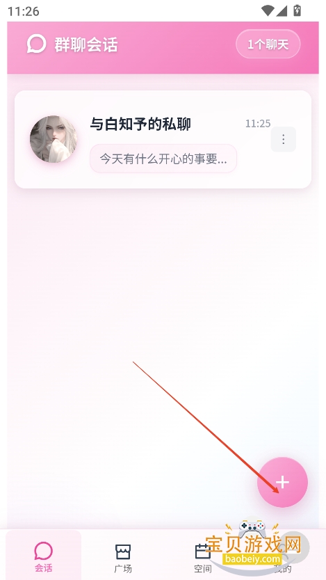 1、进入“会话”界面,点击右下角+号