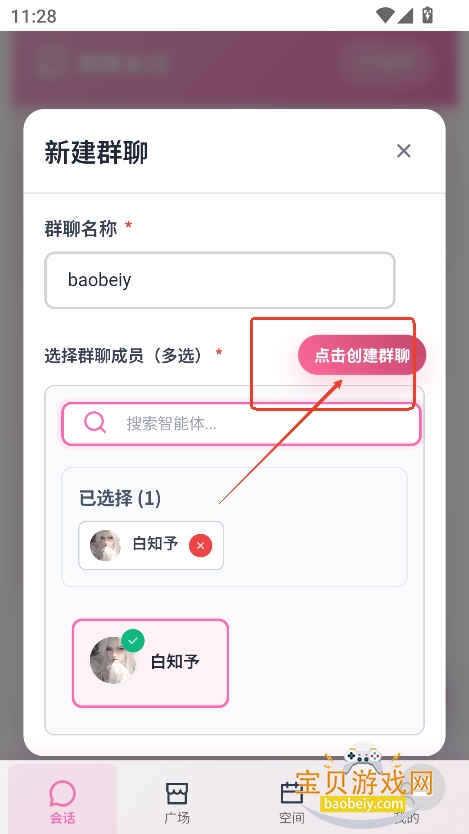 2、进入界面,输入群聊名称,选择角色,最后点击创建群聊