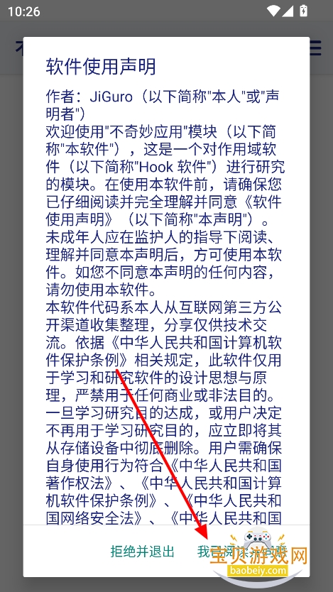 1.在宝贝游戏网下载安装不奇妙应用app安卓版,点击我已阅读并同意进入