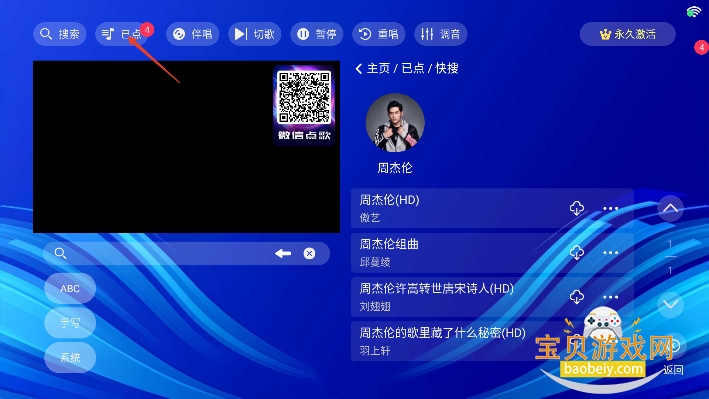 3、选择喜欢的歌曲,就可以已点歌曲中查看