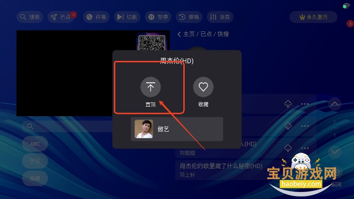 4、点击三点 ,还可以将喜欢的跟我去置顶,首先演唱