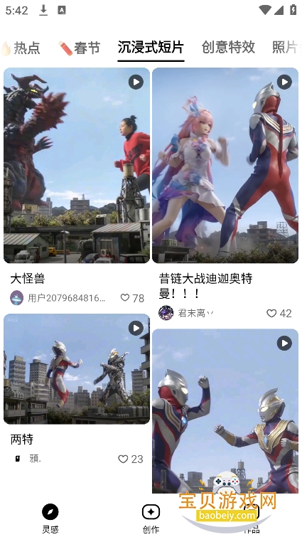 2、或者进入【灵感】板块筛选喜欢的视频模板