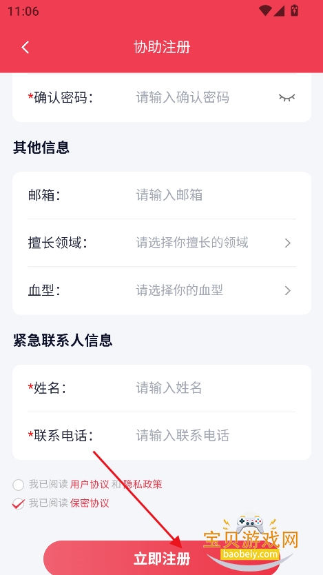 2、输入个人基本信息,点击立即注册,就可以参与义警报名了