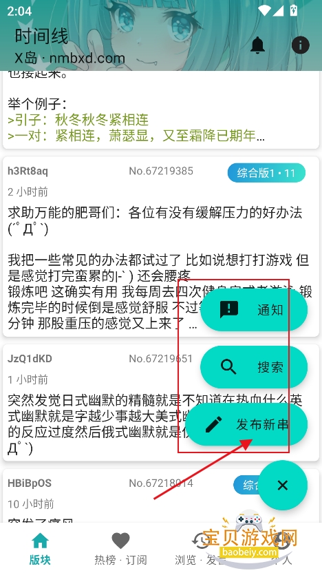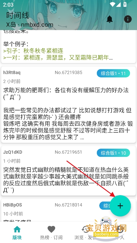 1、进入黎明岛K首页,可以浏览各种新鲜的帖子