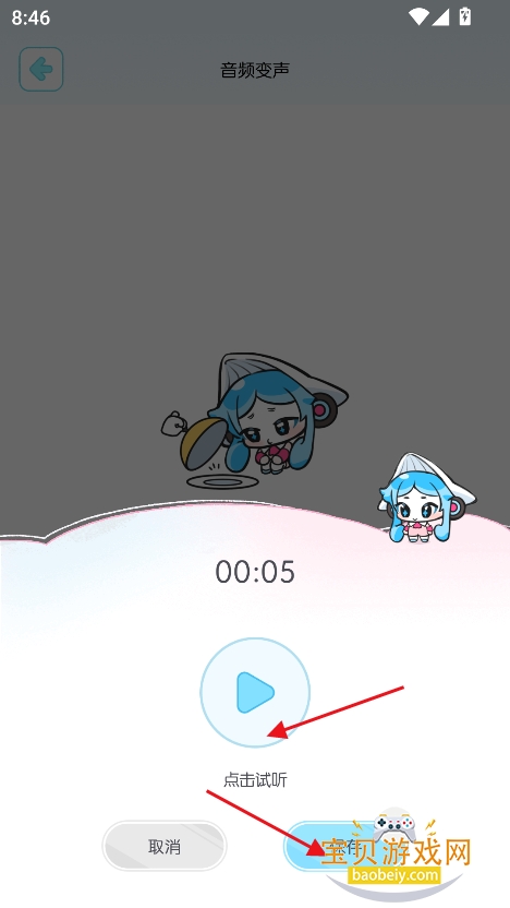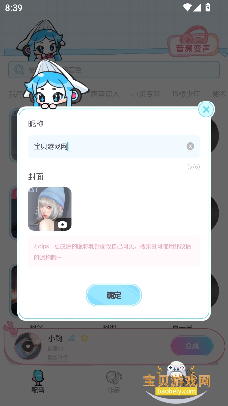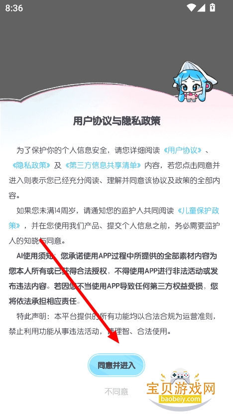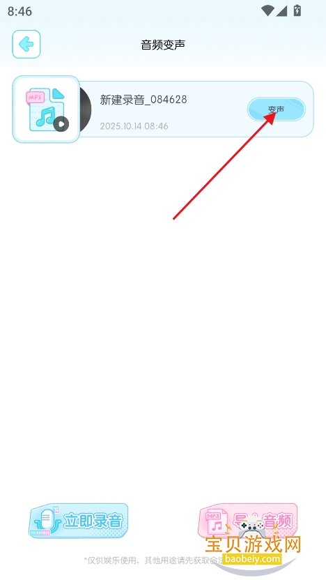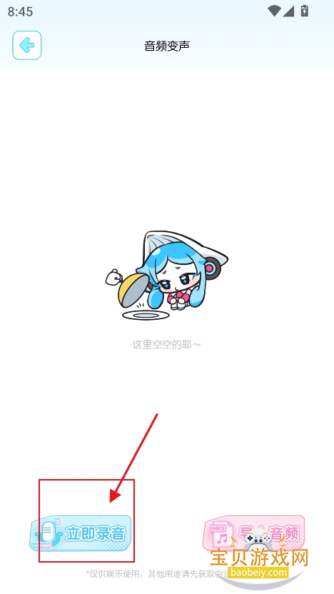 1、在宝贝游戏网下载安装心水变声器app手机版,点击“同意并进入”