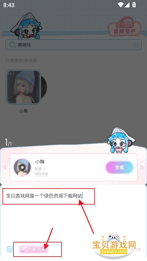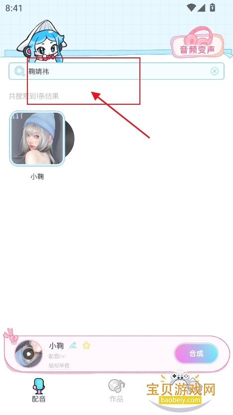 3、或者也可以直接搜索框输入关键词,例如搜索“鞠婧祎”精准搜索音色