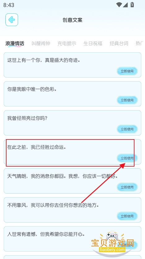 5、选择你喜欢的文案,点击立即使用