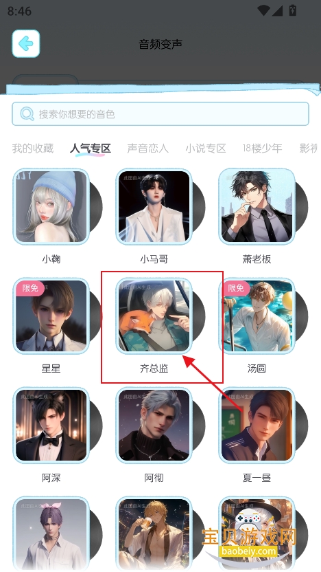 6、选择喜欢的音色,点击进入