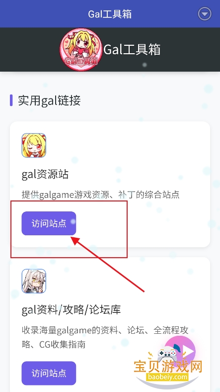 2、或者进入gal资源站,点击【访问站点】