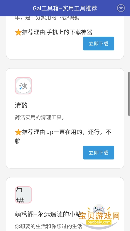 Gal工具箱官方版(galgame游戏库),是一款专门为Galgame玩家打造的资源聚合软件,专注服务广大Galgame爱好者,一站式整合全网优质相关资源。平台汇集齐全的游戏、攻略、汉化组相关资源等内容,支持一键跳转获取或直接下载使用,界面设计清爽简洁,无广告弹窗打扰,也无额外强制捆绑安装包,全程带给用户干净流畅、优质舒心的使用体验。