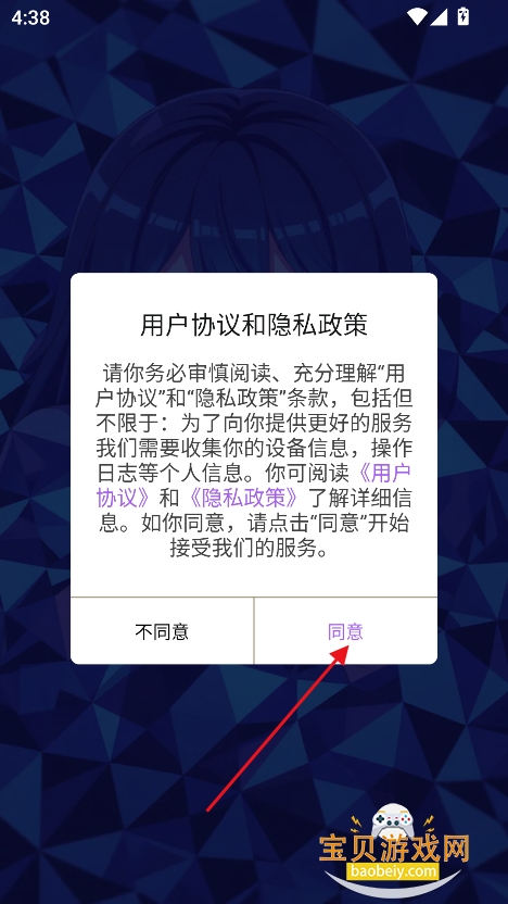 1、在宝贝游戏网下载安装准星萤火手机版,点击“同意”进入
