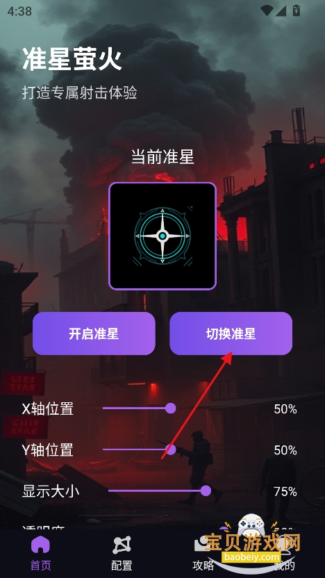 2、进入主界面,如果不满意现在的准星样式,可以点击切换准星