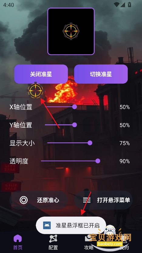 准星辅助器下载合集分享给大家,打开软件后,无需注册登录即可直接看到“开启准星”按钮。点击该按钮并允许软件显示在其他应用的上层。成功开启准星后,可以根据个人喜好和游戏需求调节准星的样式、大小、颜色、位置