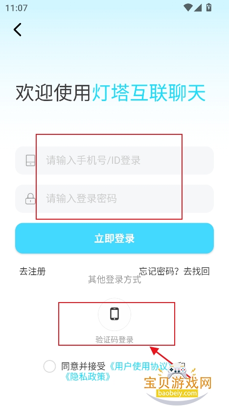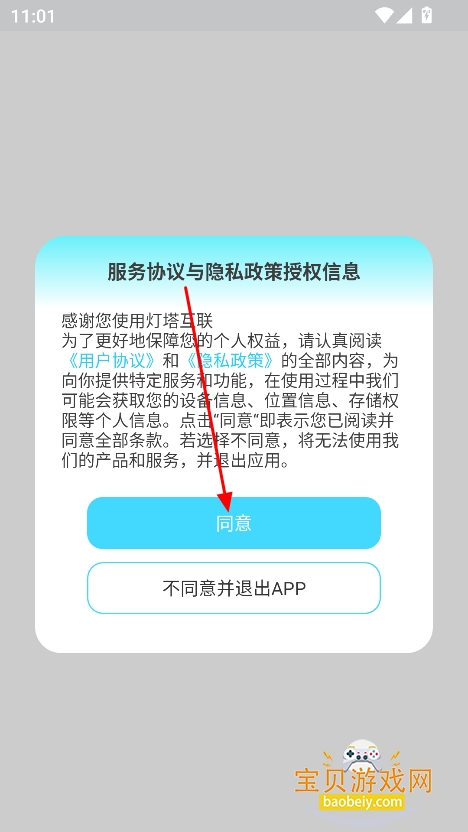 1、在宝贝游戏网下载安装灯塔互联安卓app下载,点击“同意”进入