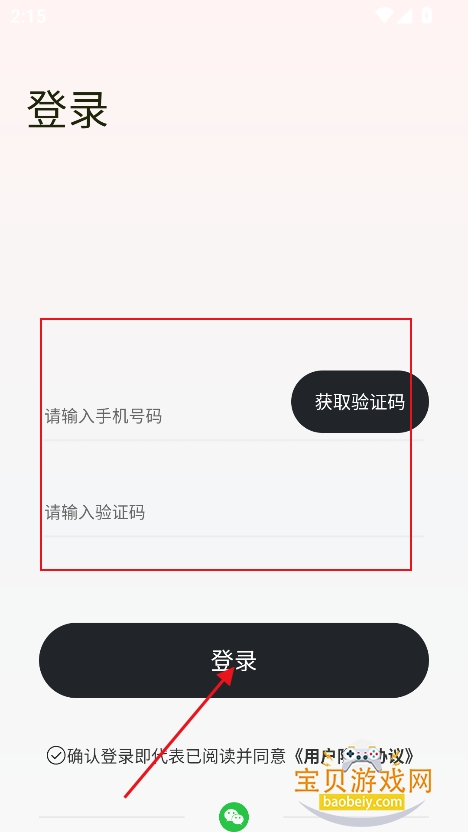 2、进入登录界面,直接输入手机号验证就可以登录成功