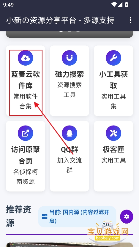 1、进入首页,点击“蓝奏云软件库合集”