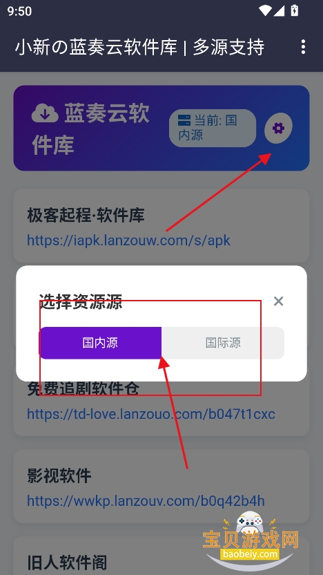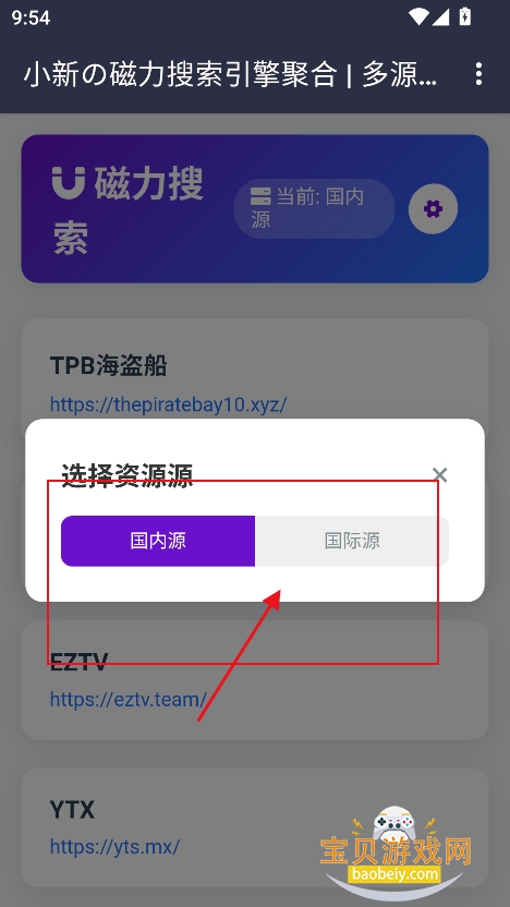 3、点击右上角设置按钮,可以筛选国际资源,国内资源等,任意切换需要的资源类型