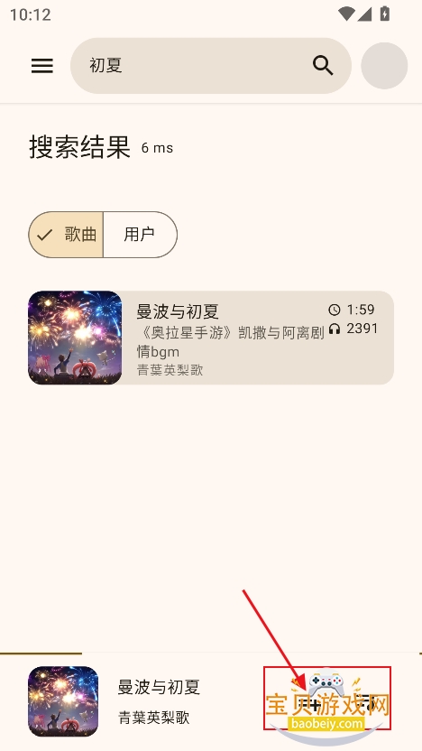 3、根据搜索结果,进入喜欢的音乐,点击播放