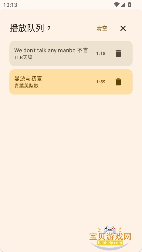收听场景适配:支持音乐离线下载,无网环境下可随时收听;提供“单曲循环”“随机播放”等播放模式,搭配简洁播放界面,适配通勤、休闲等多元场景。