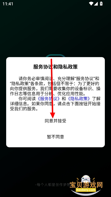1、在宝贝游戏网下载安装灵梦ai软件最新版,点击“同意并接受”进入