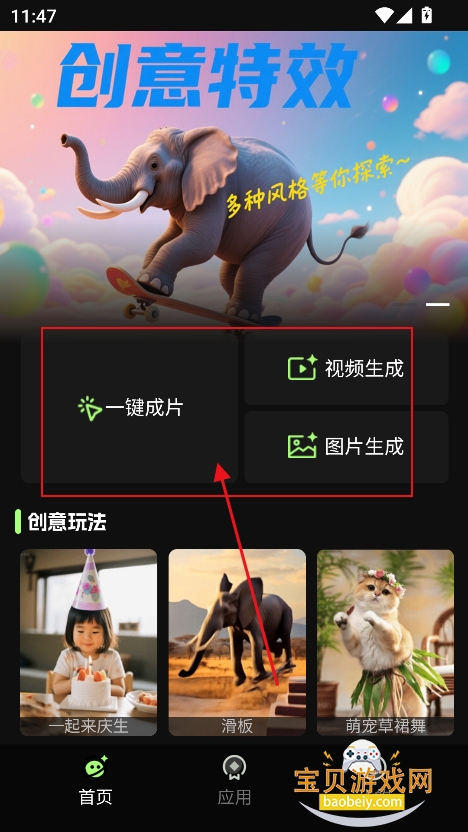 2、进入首页提供一键成片,视频生成,图片生成等生成功能