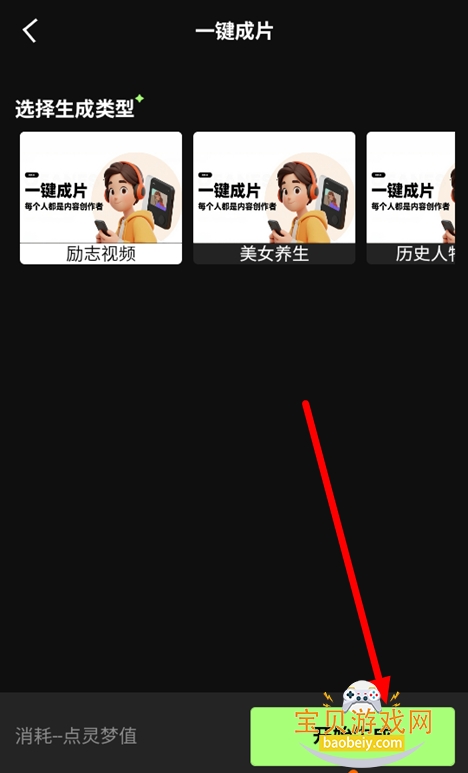 3、进入一键成片界面,选择模板,点击开始生成