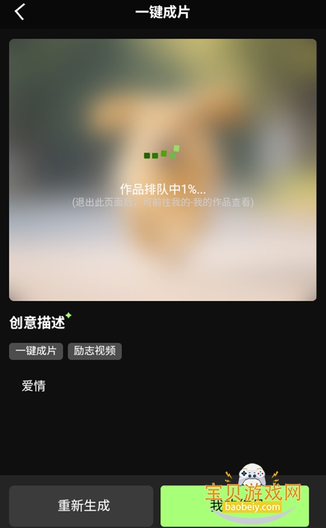 4、生成之后可以点击查看我的作品,或者重新输入关键词,点击重新生成