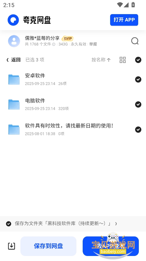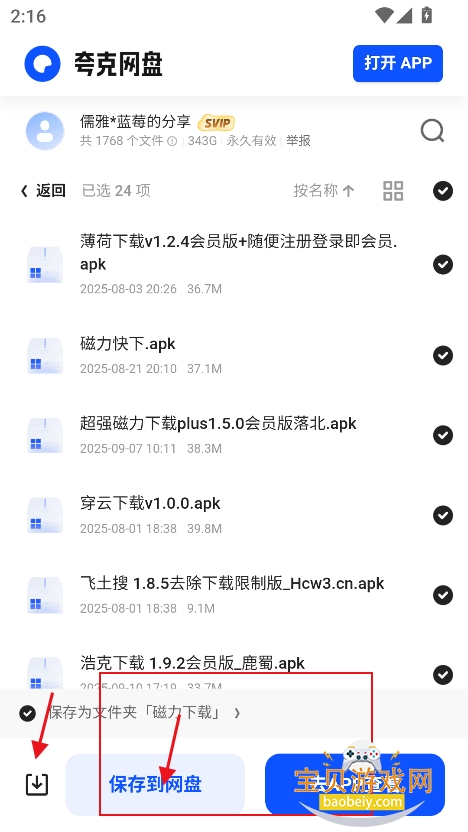4、直接勾选需要的资源,可以直接下载,或者点击保存到网盘进行转存