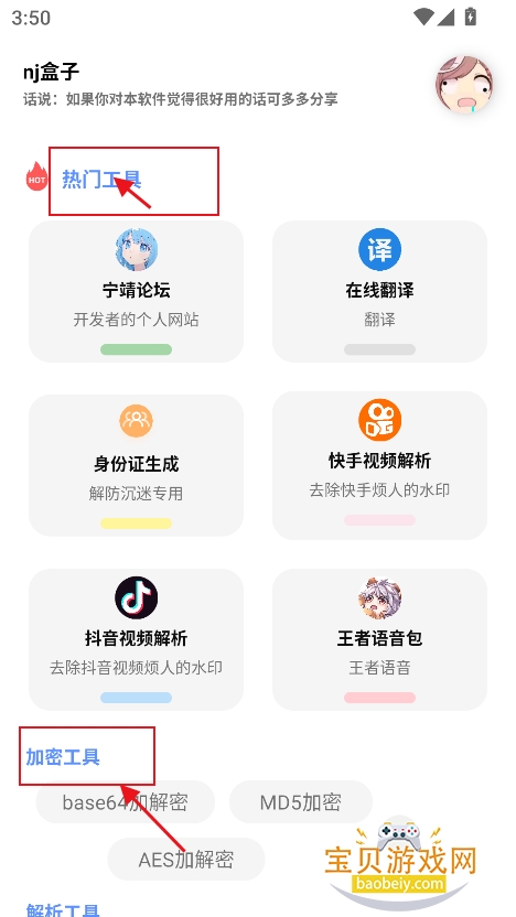1、进入首页,提供超多热门工具,实用工具,解析工具,加密工具等,可以根据个人需求筛选工具