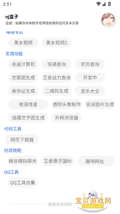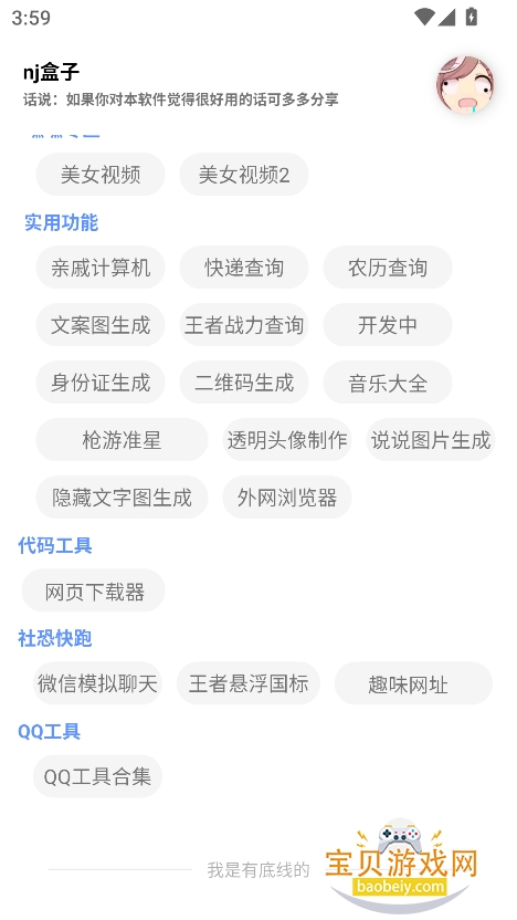 宁靖盒子app下载2025最新版,一款多功能手机聚合工具箱应用,软件以工具全覆盖,操作零难度为核心,整合在线翻译、身份证生成、快手抖音视频解析等多种实用小工具,覆盖生活、工作多类需求场景,无需复杂学习即可轻松上手,让用户无需下载多个单一工具APP,通过一个平台就能快速解决各类小问题,满足各种玩机需求。喜欢的欢迎来宝贝游戏网下载体验吧!