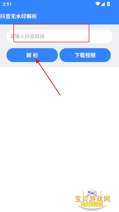 3、例如点击抖音解析进入,需要输入抖音地址,点击解析,可以解析无水印视频,同时支持下载视频