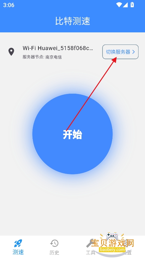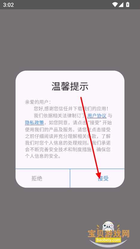 1、在宝贝游戏网下载安装比特测速app手机版,点击“接受”进入