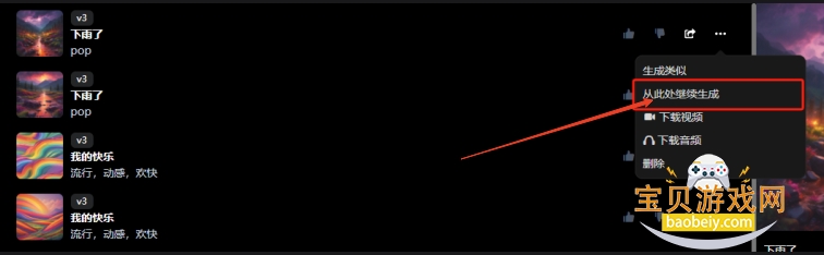 注意:需要是使用自定义模式下生成的第一段才能进行继续生成来达到延长时间。