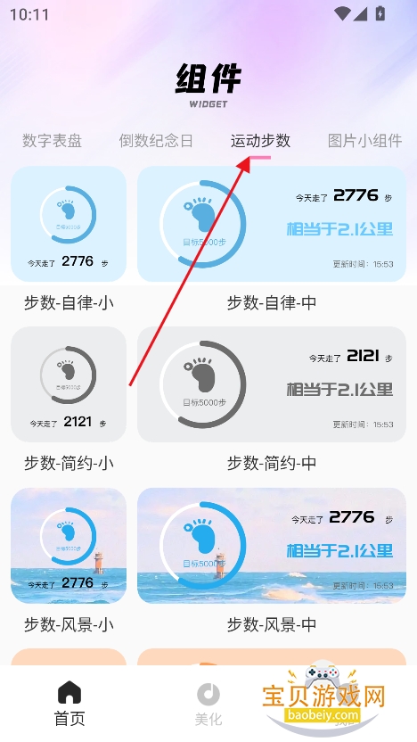 2、例如切换到运动步数,提供更多组件内容,可以选择喜欢的美化风格