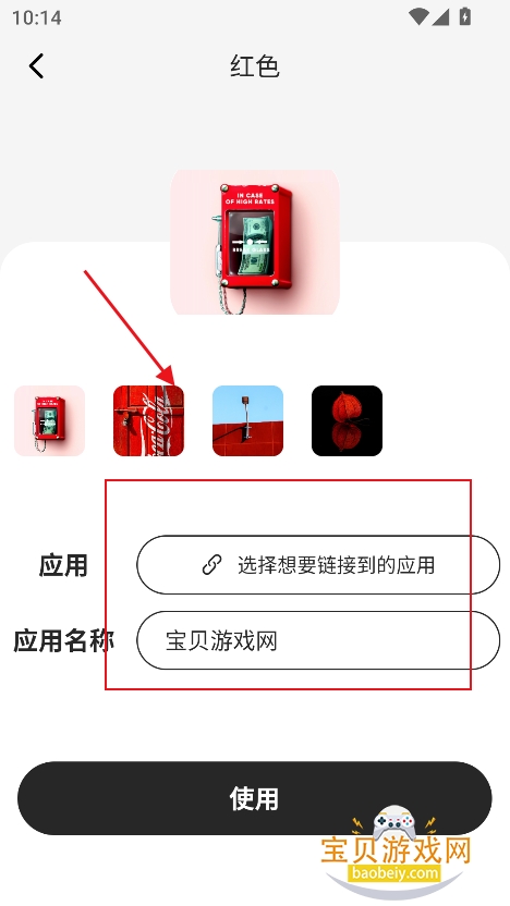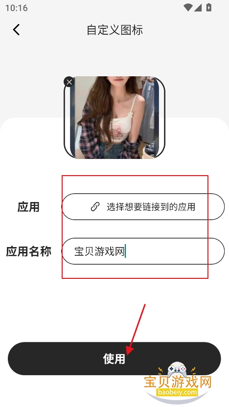 7、选择图标包图片,软件,关联应用地址等点击使用