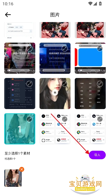 3、勾选图片文件,点击导入