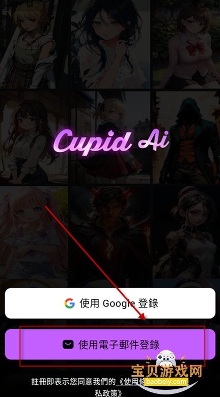 1、进入Cupid AI软件登录界面,首先选择登录方式,完成登录注册流程