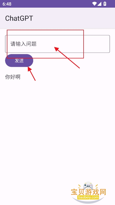 3、例如进入gpt功能,可以文本框输入对话内容,点击发送,即可为你加载相关问题回答