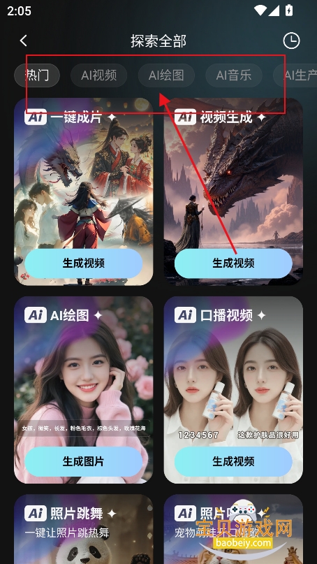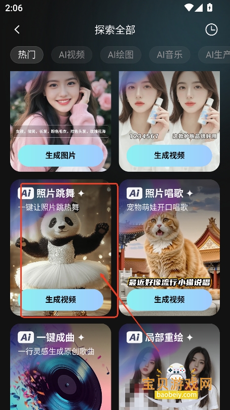 2、例如选择ai生成视频 ,选择喜欢的模板进入