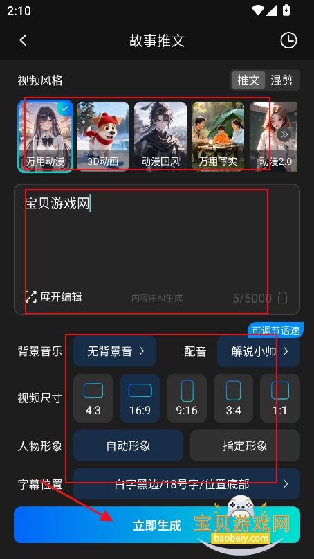 内容个性化突出:支持自定义元素丰富,从视频风格、背景音乐到字幕字体,均能根据用户偏好调整;AI续写功能可根据用户输入的故事风格(如幽默、温情)生成对应调性的内容,避免“千篇一律”。