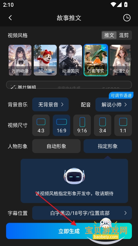 丰富视频风格选择:内置卡通动画、写实影像、复古胶片、科技感赛博朋克等10+视频风格模板,每种风格搭配专属滤镜、背景音乐与字体,满足不同故事主题的视觉表达需求。