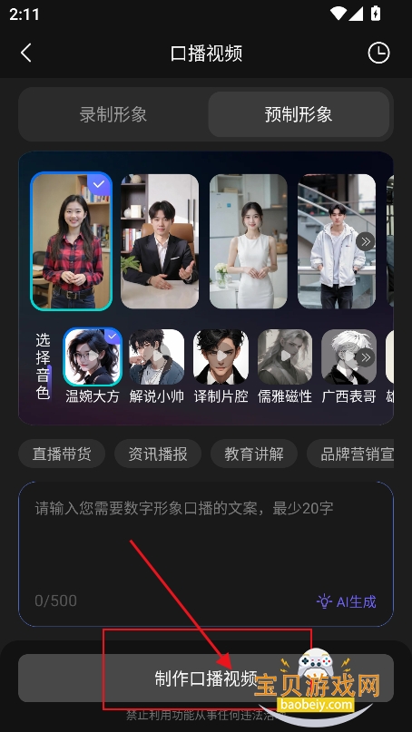 A:目前支持两种模式,一是选择软件内置的热门歌曲(涵盖流行、经典等类型),二是上传自定义音频(需为清晰的人声歌曲),上传后AI可自动匹配口型,暂不支持直接输入歌词生成歌曲音频。
