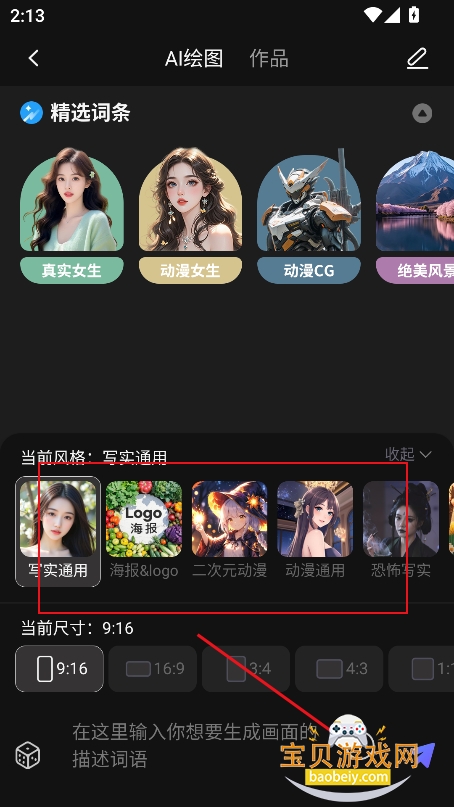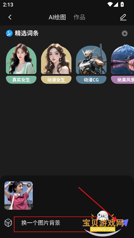 7、进入ai改图界面,可以选择ai绘画,以及绘画作品等内容