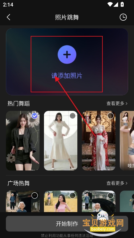 趣味照片互动功能:提供“照片唱歌”(上传人物照片,AI自动生成对口型唱歌视频)与“照片跳舞”(选择舞蹈模板,照片人物可跟随节奏做出对应舞蹈动作)功能,支持自定义背景音乐与舞蹈时长。