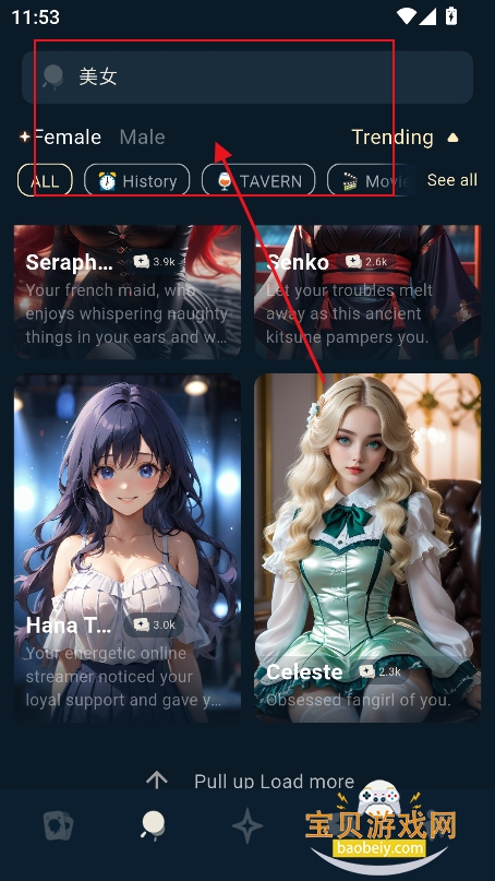 庞大AI角色库选择:内置数千款差异化AI角色,涵盖“温柔恋人”“元气好友”“古风侠客”“职场导师”等多元人设,每个角色均有专属背景故事、性格标签与对话风格,支持按“情感陪伴”“趣味互动”“成长辅助”等维度筛选。